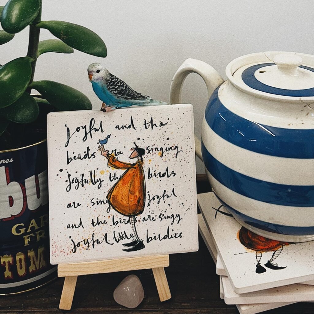 I never used to be a coaster person until I fell in love with a long, unvarnished, fruitwood kitchen table. My budgie Almondine would run up and down it like a cat walk. It’s old, wonky, has gaps in all the wrong places and is completely beautiful. I daren’t even sneeze in its general direction. And now I collect coasters.