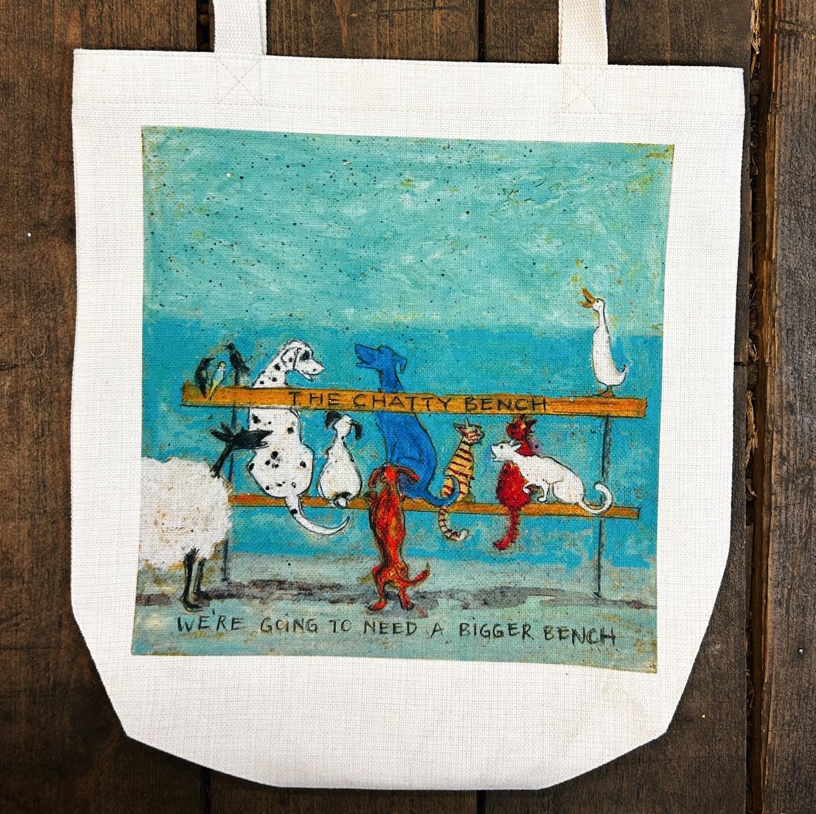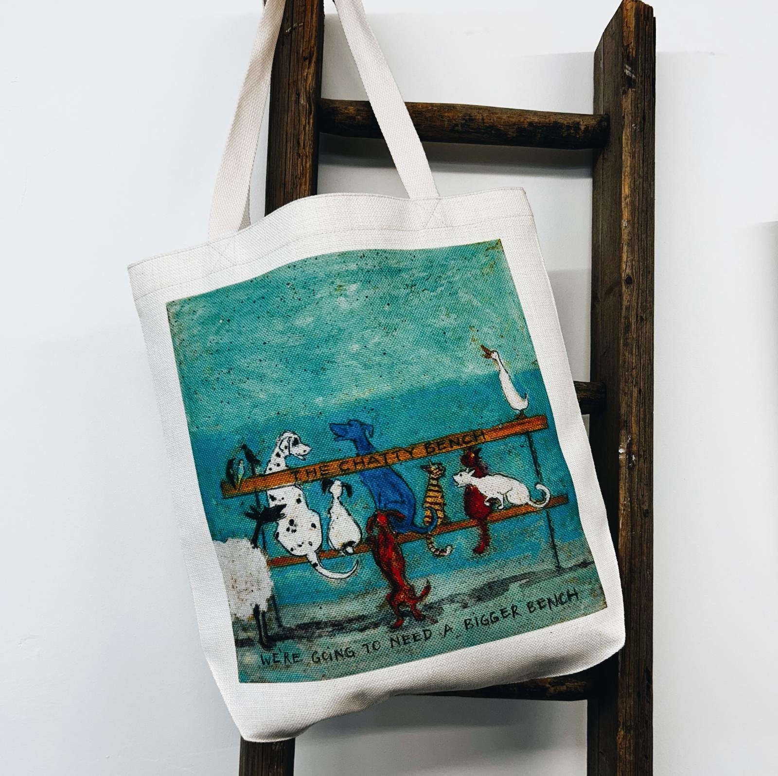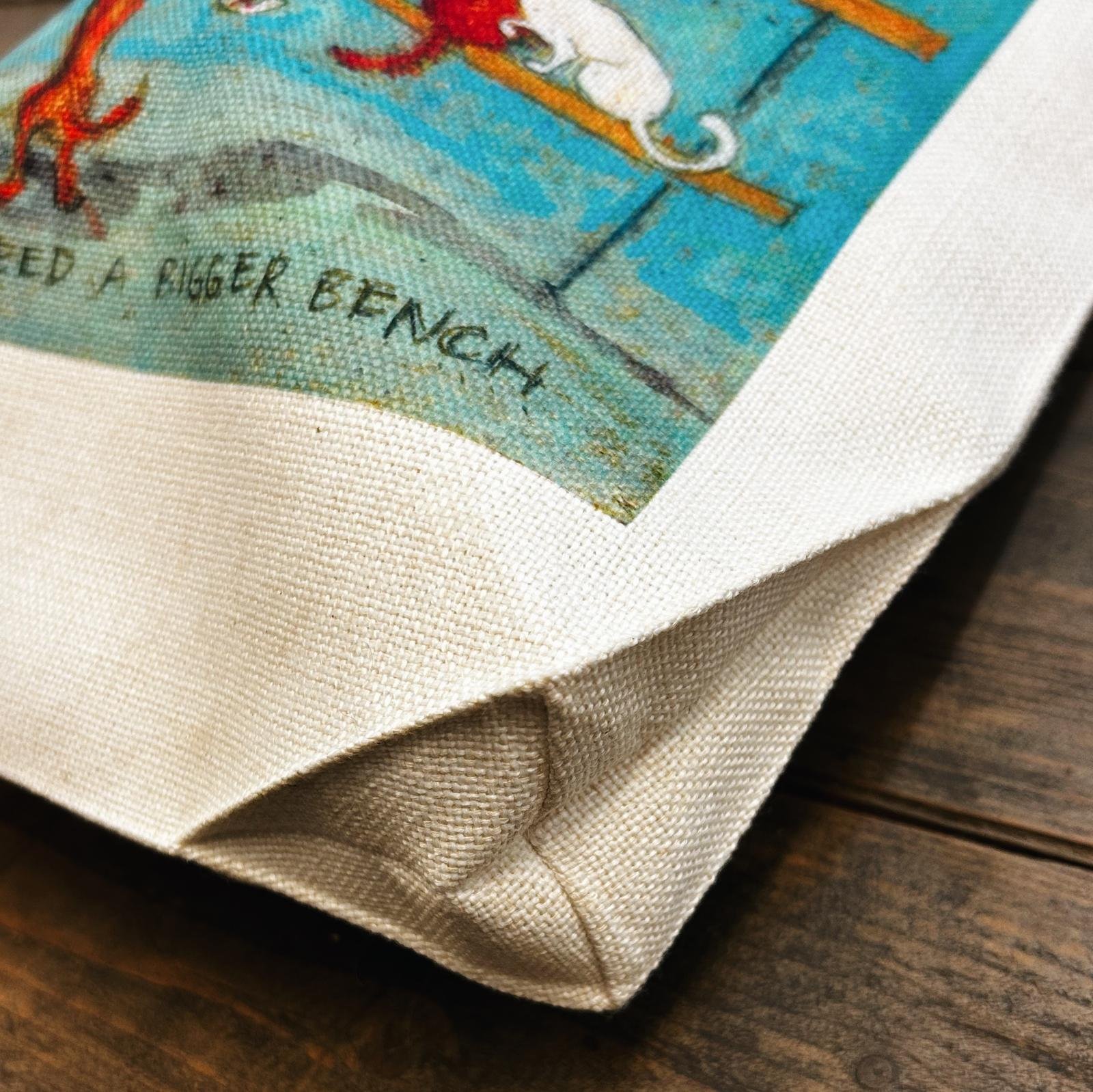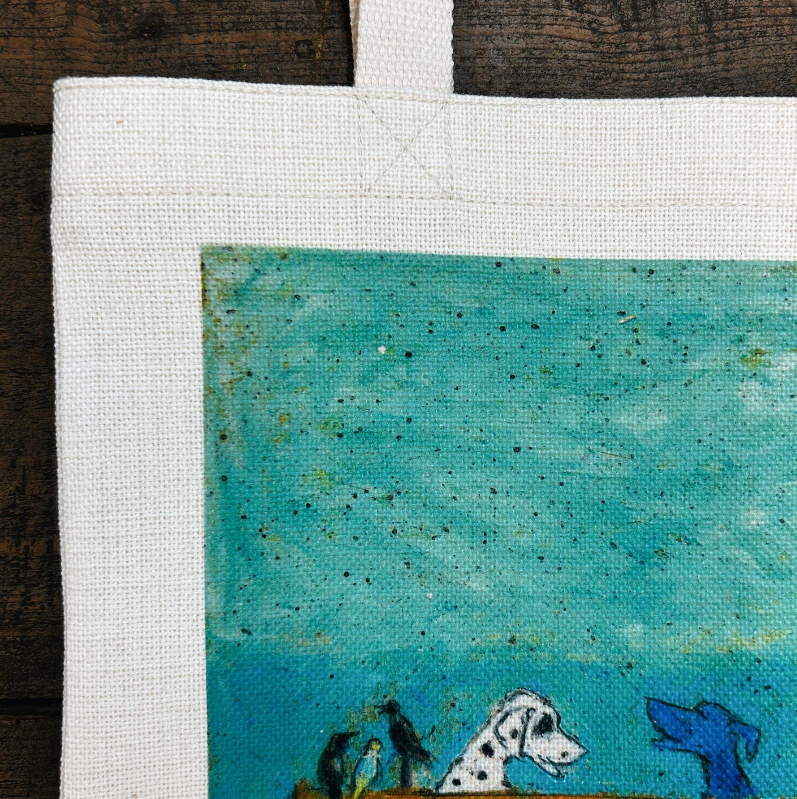 A substantial heavyweight linen style bag, with long handles, textured weave, square design and a gusseted bottom! Strong enough for carrying all your necessaries and you may even make new friends standing in the bus queue as they’re a bit of a conversation starter. You could always turn them back to front if you’re having a quiet day.