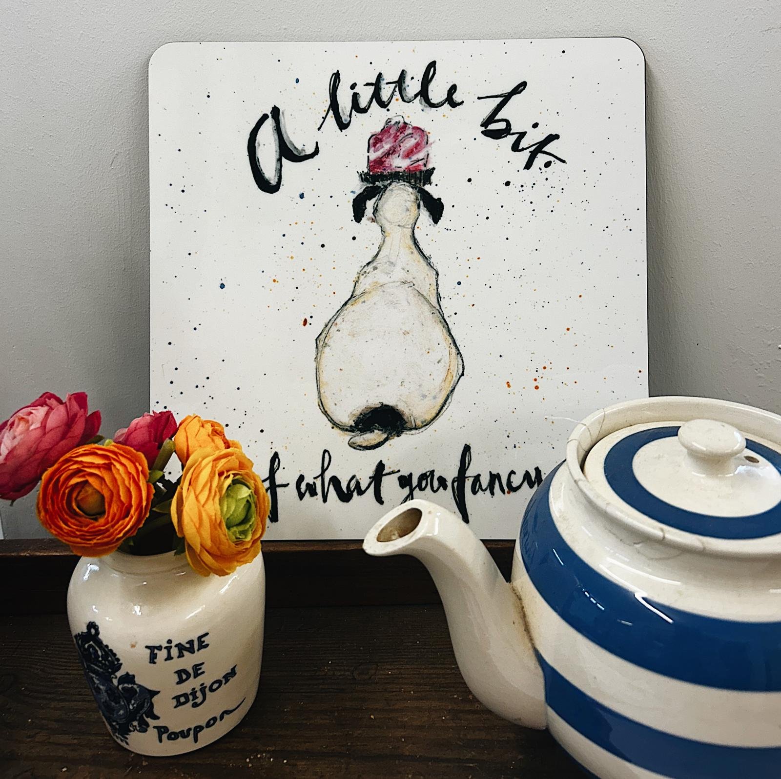Made from hard board with a durable coating and rounded corners. Lightweight and hard wearing, the glossy finish makes my colours so vibrant and true. You could even use them as pictures for your shelf or mantle, the reproduction is so crisp and bright… Otherwise, something lovely to put your teapot on or decorate your table when you’ve run out of space on your walls.